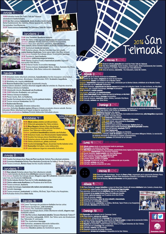 10:30 Misa Mayor con la coral Beheko Plaza Abesbatza, oración frente al mar y regreso a la Parroquia. Adoración de la reliquia de San Telmo.