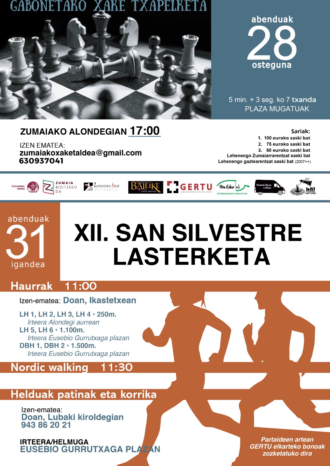 AJEDREZ: 28 de diciembre, jueves, 17:00h; SAN SILVESTRE: 31 de diciembre, 11:00h