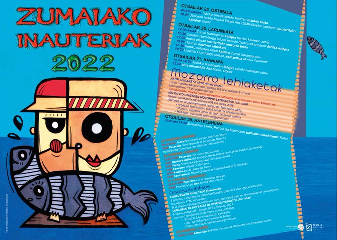 Comenzando con el desfile de la Escuela de música el día 25 y finalizando con la sesión de los payasos PIrritx, Porrotx eta Marimotots en Zumaiena el día 28.