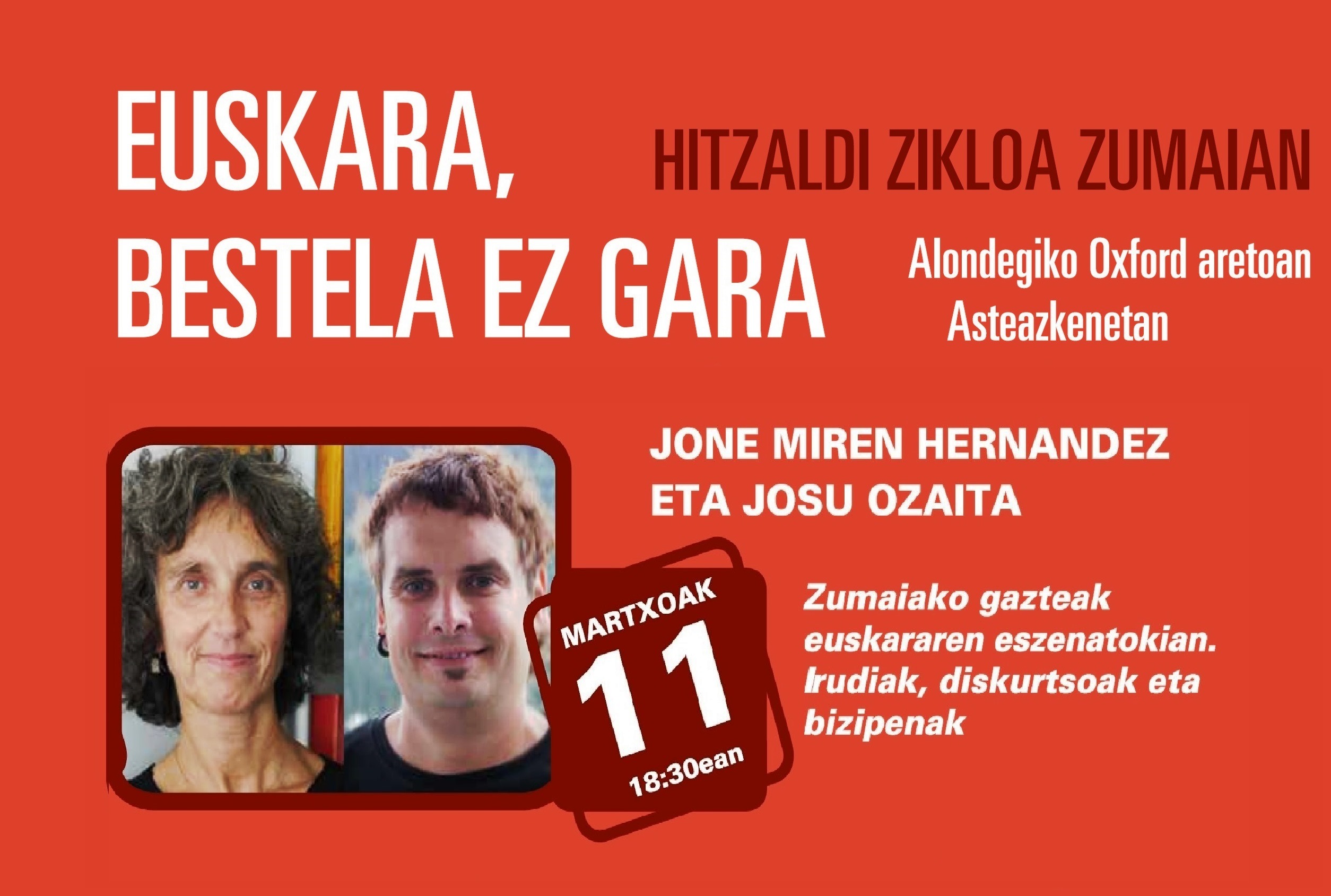 - 11 de marzo: Zumaiako gazteak euskararen eszenatokian. Irudiak, diskurtsoak eta bizipenak, Jone Miren Hernandez yJosu Ozaita