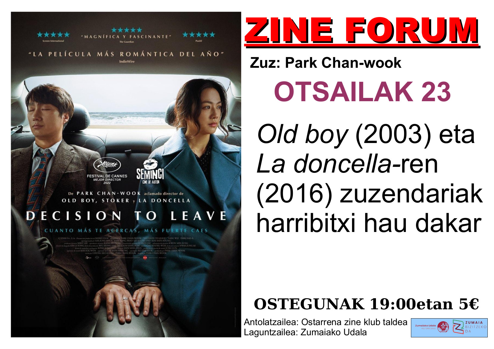 DECISION TO LEAVE sesión de cine forum