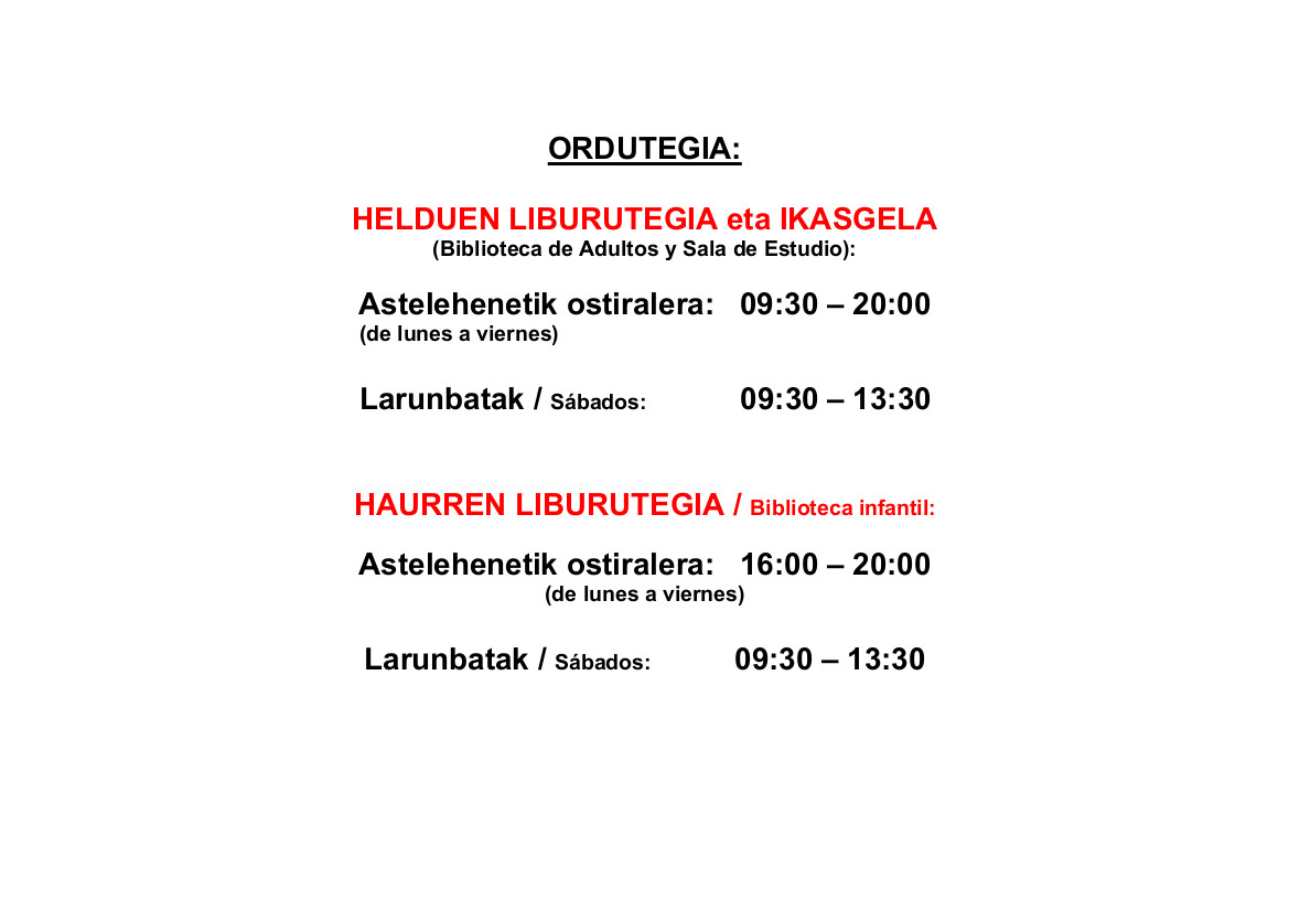 Horario de invierno de la biblioteca