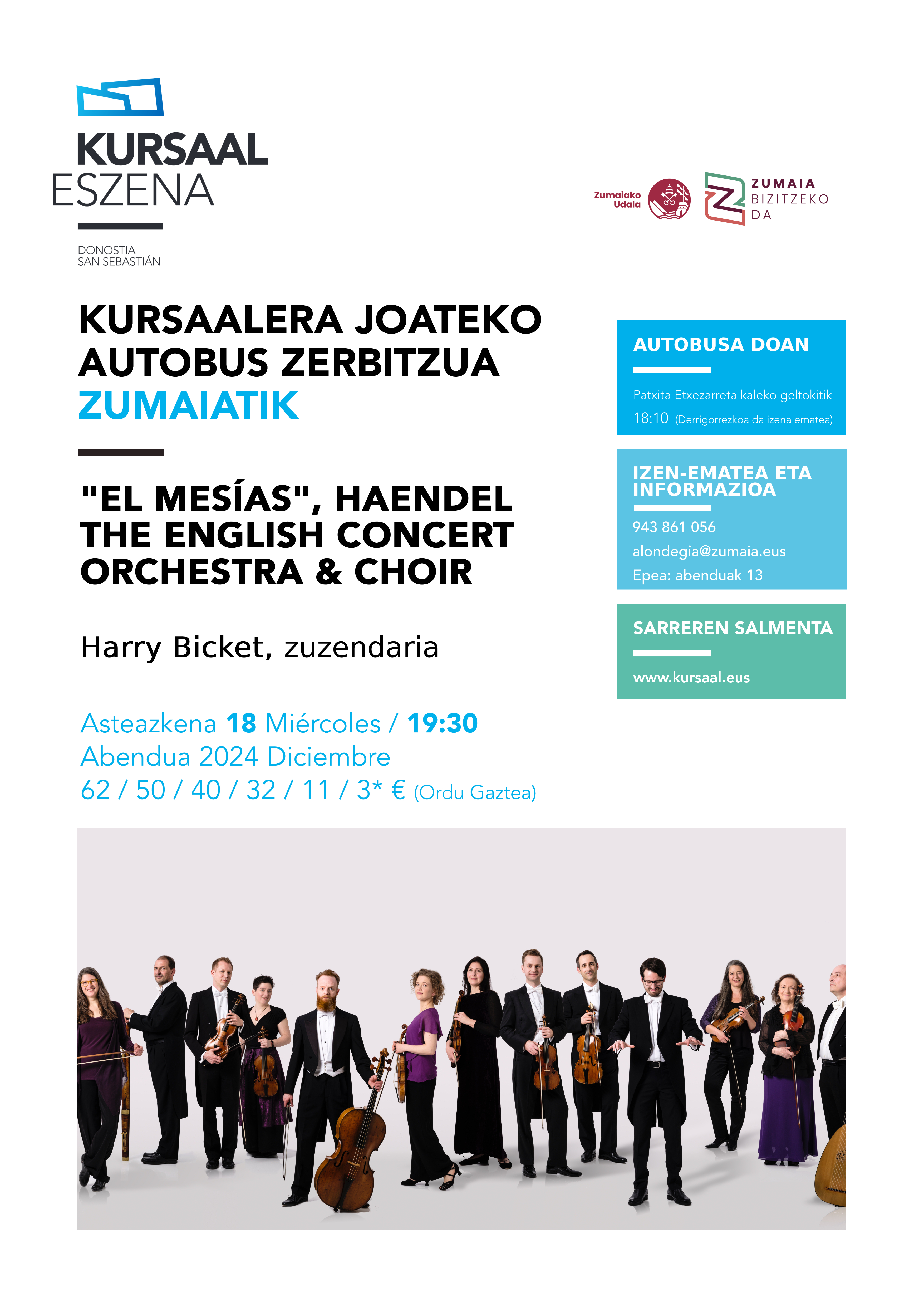 Servicio de autobús para ir al Kursaal desde Zumaia: "EL MESÍAS" HAENDEL THE ENGLISH CONCERT ORCHESTRA & CHOIR