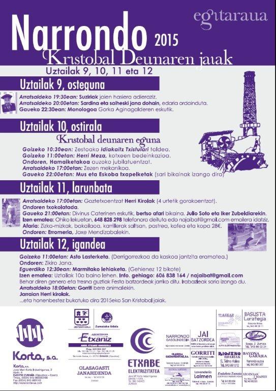 Larunbatetik igandera bitartean ekitaldi ugari izango dira Narruondo auzoan Kristobal deunaren festak ospatzeko.