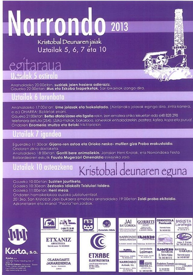 Kristobal festak ospatuko dituzte Narrondo auzoan asteburuan hasi eta datorren asteazkena bitartean. Ostiraletik aurrera ekintzaz beteko da auzoa.
