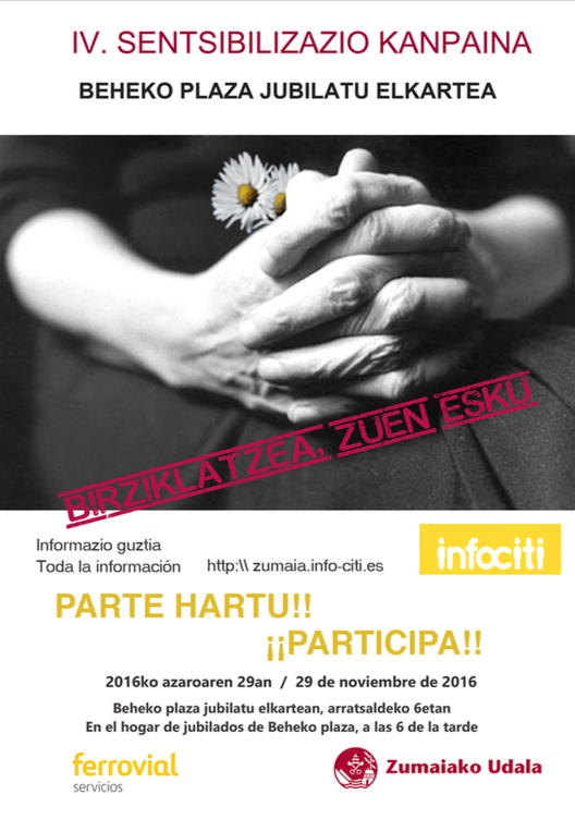 BIRZIKLAPENAREN INGURUKO SENTSIBILIZAZIO KANPAINA BEHEKO PLAZAKO ZAHARREN EGOITZAN