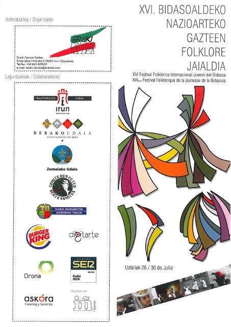 Larunbatean, hilak 28, 12:30ean, Bidasoaldeko Nazioarteko Folklore jaialdiaren baitan, Zumaiako kaleetan kalejira egingo dute herrialde ezberdinetako dantzariek. Aurtengoan, bisitan izango ditu Kornicka Folk Group (Eslovakia), Tarka Nativista Goup (Brasil) eta Eraiki (Irun). Euskal Herriko dantzak ikusteaz gain, beraz, Brasil eta Eslovakiako dantzak ezagutzeko aukera paregabea izango da, beraz, larunbat eguerdian.
