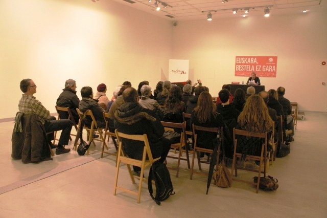 30 bat lagun bildu ziren asteazkenean Udalaren Euskara Zerbitzuak antolatutako 'Euskara, bestela ez gara' zikloaren estreinako hitzaldian. Fermin Etxegoien euskara eta estetikari buruz aritu zen, eta hitzaldiaren ondoren, galderak egin eta solasaldirako tartean izan zen. Herritarrek beren galdera eta kezkak azaldu eta iritzia emateko aukera izan zuten. Hitzaldia osoa Baleikek sareratu du, ikusteko klikatu hemen.