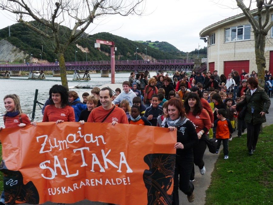 Zumaian Saltaka euskararen alde (Gernika parkea, Moilaberriko zubia, Pulpo aurretik Erriberan sartu eta Beheko plazan bukatu)