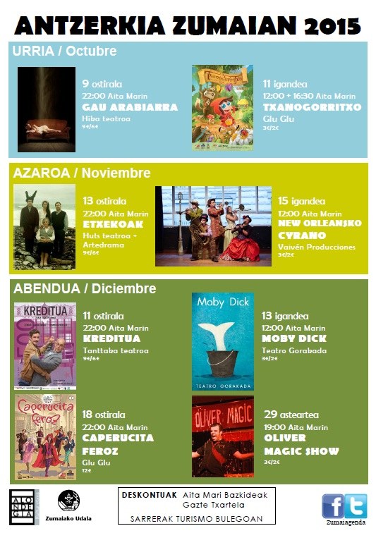 Ohi bezala saioetarako sarrerak Turismo Bulegoan salduko dira aurrez, eta deskontua izango dute Aita Mariko bazkide txartela edota Gazte Txartela dutenek.
