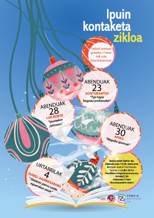 Gabonetan, 4 goizetan. Izena eman behar da: haurliburutegia@zumaia.eus