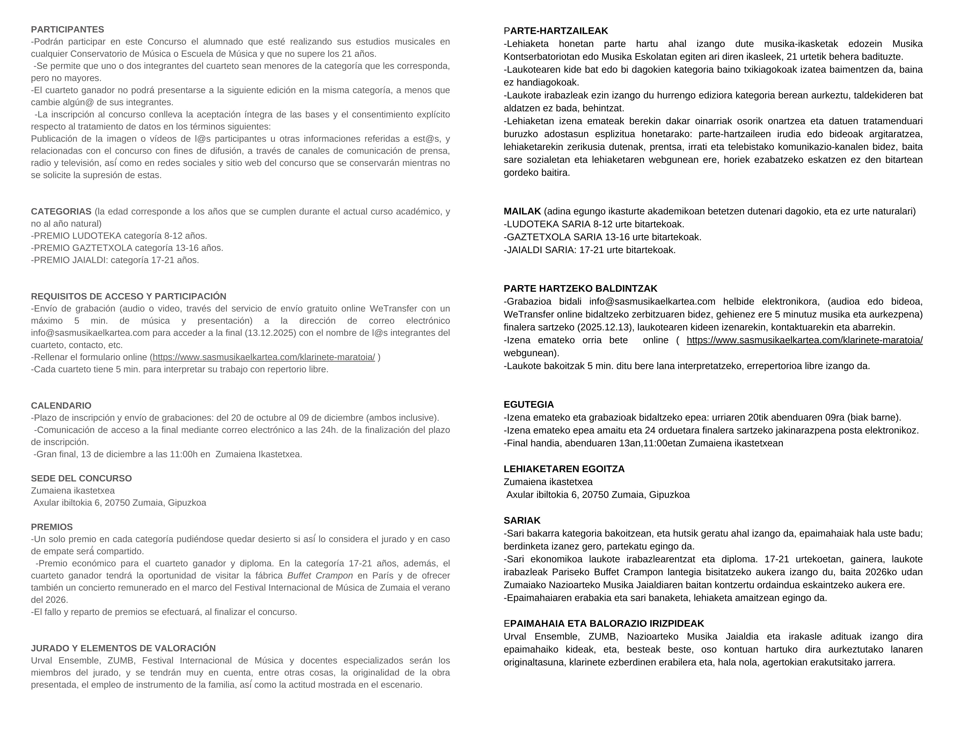 KM-ZUMAIA SARIA: Klarinete laukoteen kontzertu-lehiaketa