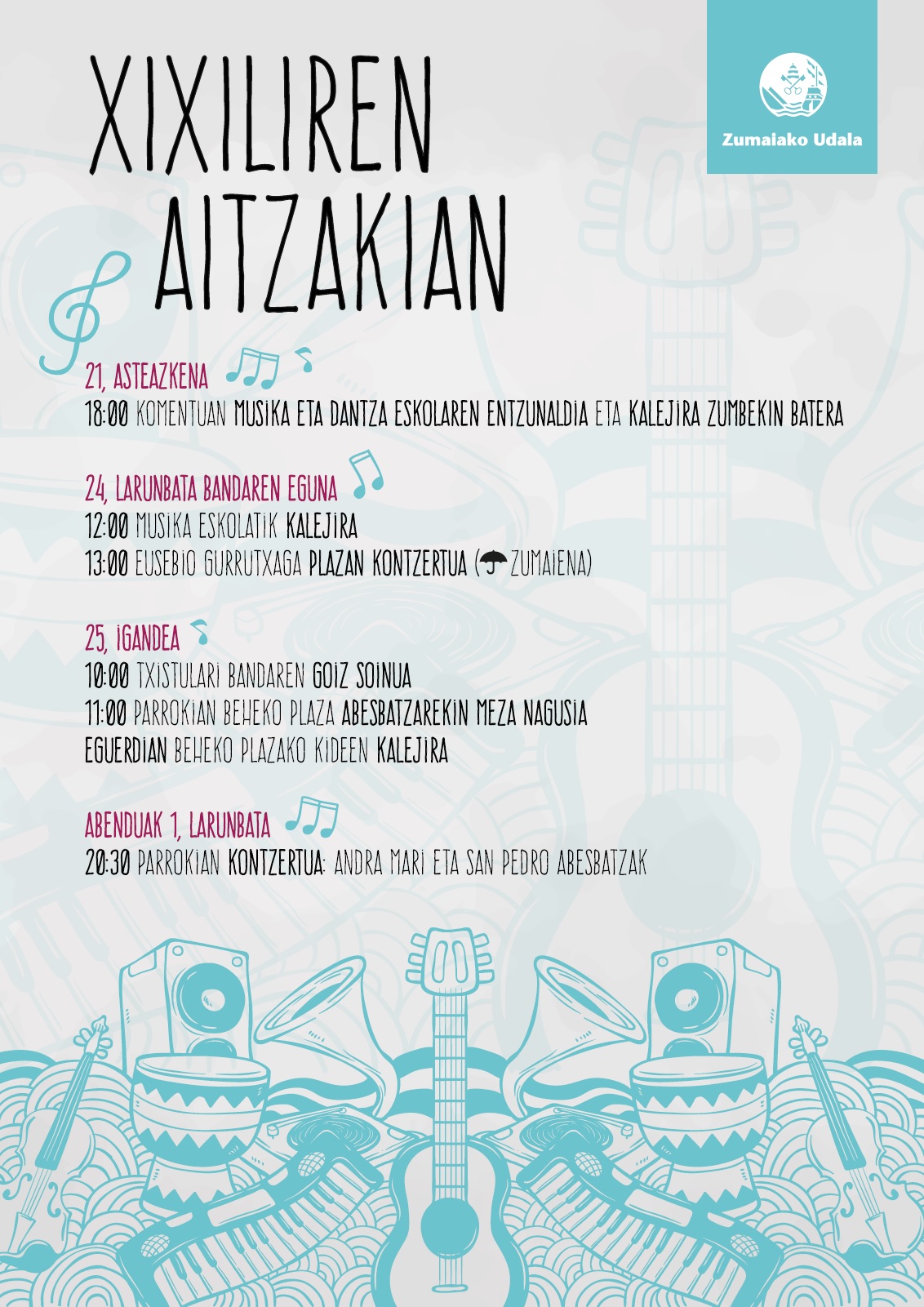13:00 Eusebio Gurrutxaga plazan kontzertua (euria eginez gero Zumaienan)
