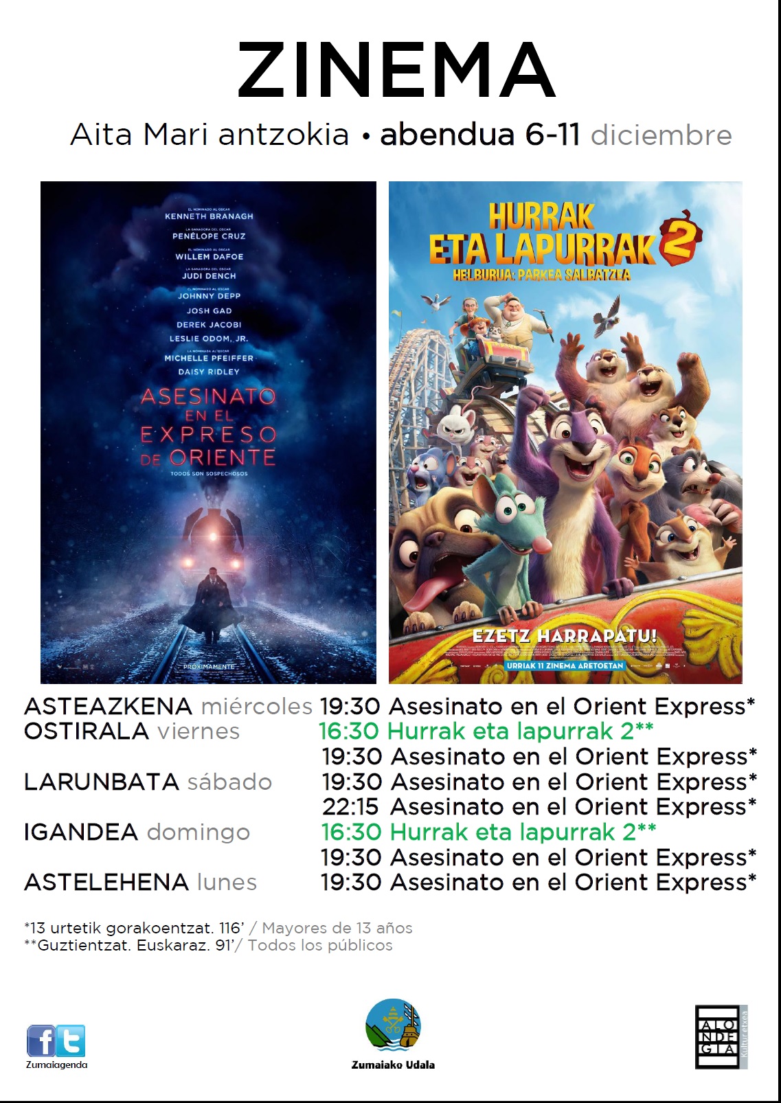 Zinema:'Asesinato en el Orient Express'+'Hurrak eta lapurrak 2'