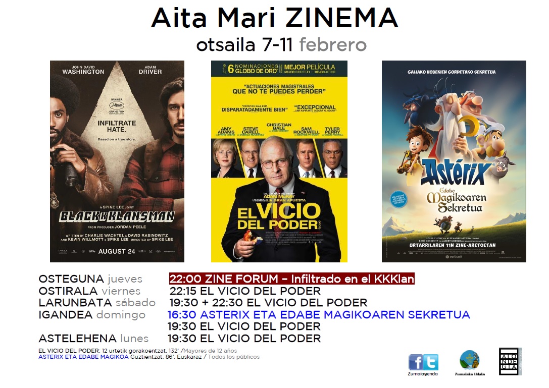 Zinema:'El vicio del poder' + 'Asterix eta edabe magikoaren sekretua'