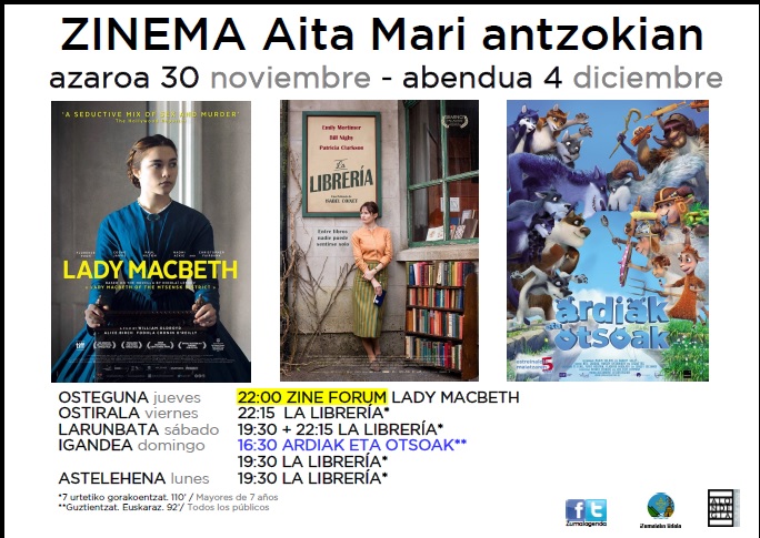 Zinema:'La librería' + 'Ardiak eta otsoak'