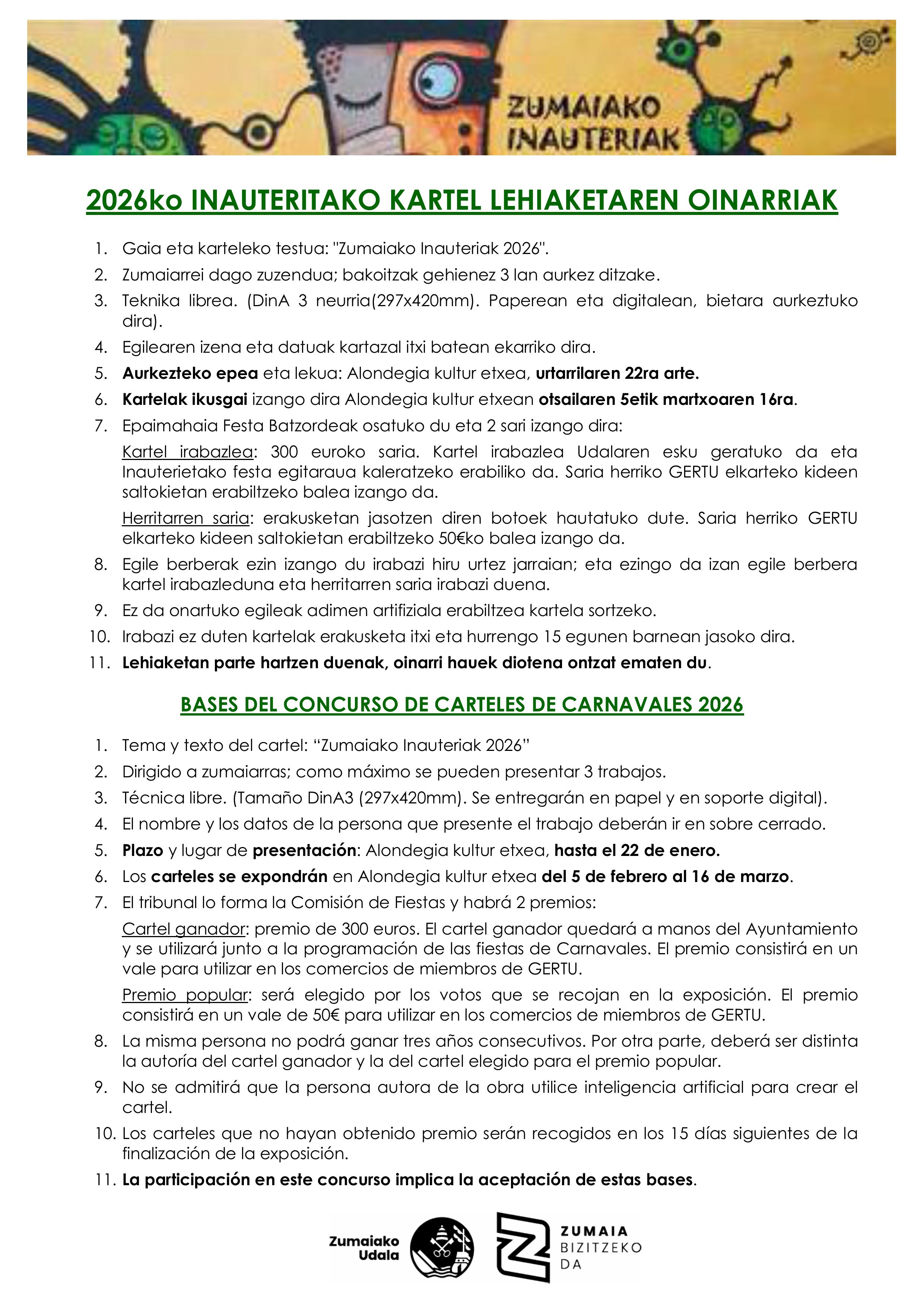 2026ko inauteritako kartel lehiaketaren oinarriak